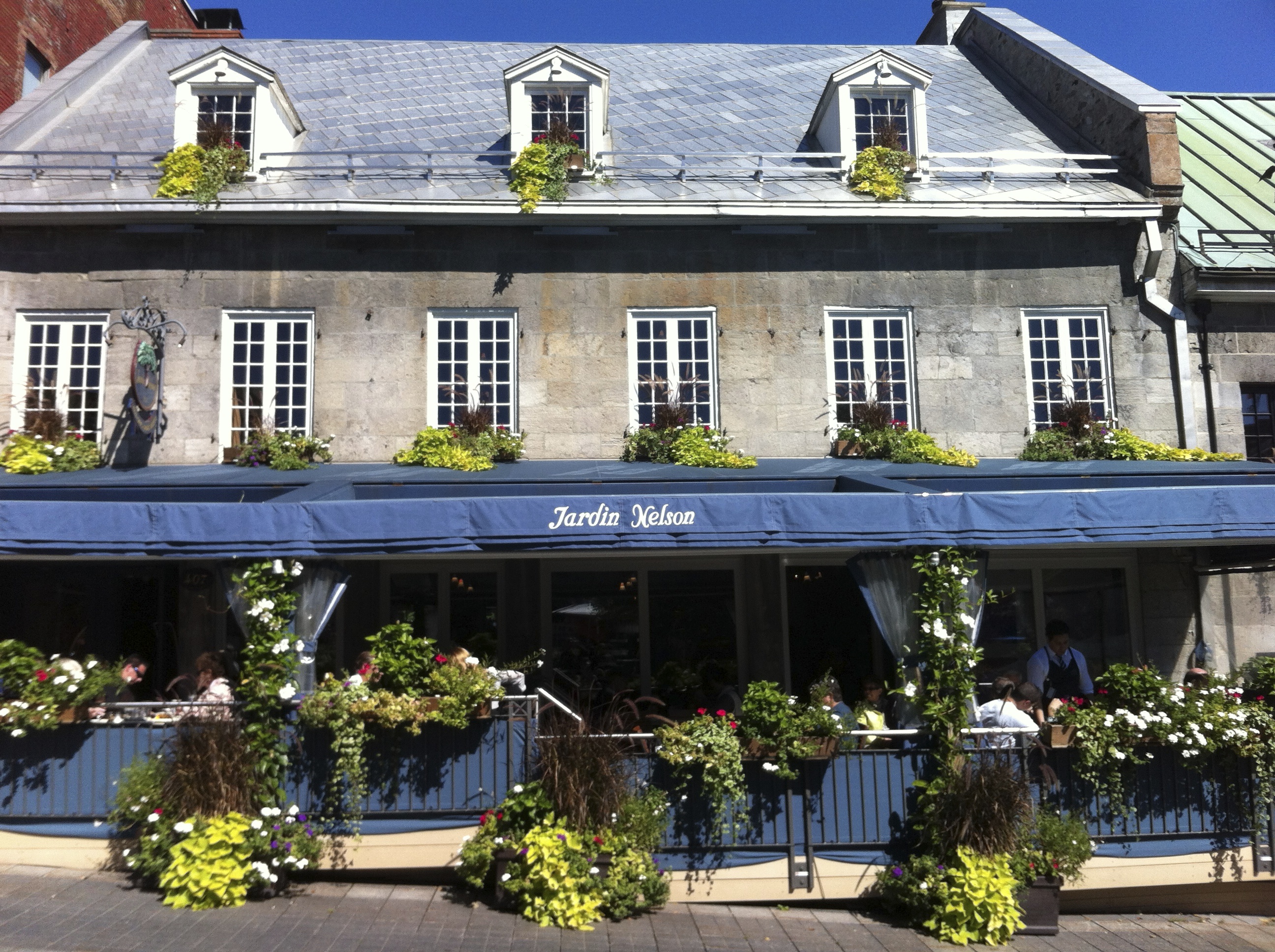 Montreal. As you may well know, there is a huge French influence on the city. The buildings are French colonial, all the signs are in French and there is a lot of evidence of the cafe culture you find in and around Europe. We made our way to the Place Jacques Cartier which is a pedestrianised area close to the Old Port, and a lovely walk along the water front. Around Places Jacques Cartier is a number of restaurants looking onto the main thoroughfare. A local recommendation was Jardin Nelson – which is a lovely place to grab a crepe – their speciality – or a cold glass of wine. The gardens round the back are impressive, more so due to the huge umbrellas that have been constructed, they provide shade from the hot summer sun, as well as cover from the snow in winter. Interestingly they have been constructed in a way that not only provides cover, but also ensures that any run off water goes directly into the numerous plants all around. The crepes are good and the coffee strong and hot! We liked it so much that after a full day wandering the streets we came back and sat on the front veranda and sampled some local cider – cold and refreshing after a lot of walking.